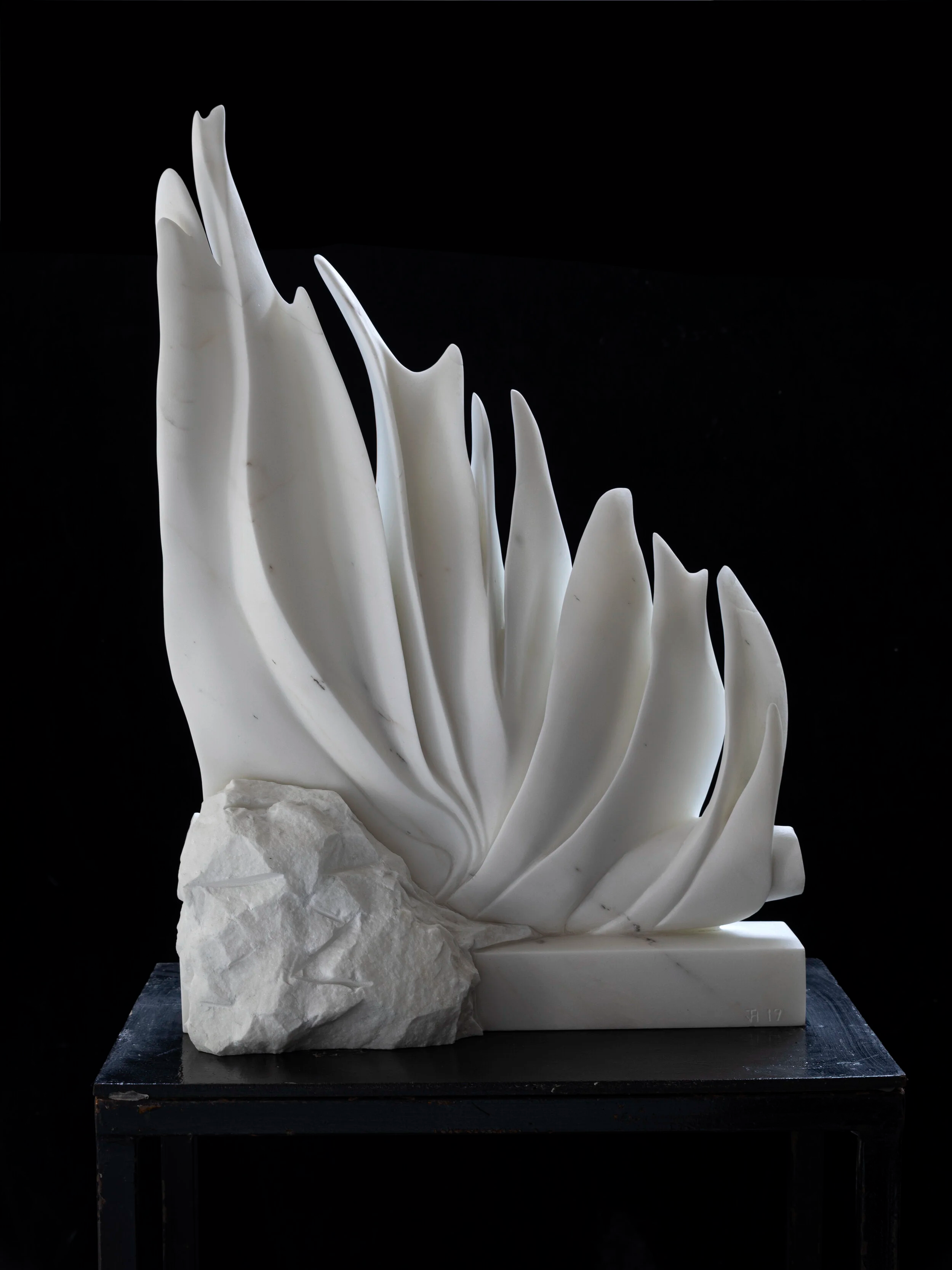 Winter Fire is a study in the impossible—capturing the weightless, flickering essence of a flame within the solid permanence of stone. Carved from a single block of marble, the sculpture depicts a series of tall, elegant flames that appear to drift upward with an almost liquid grace.